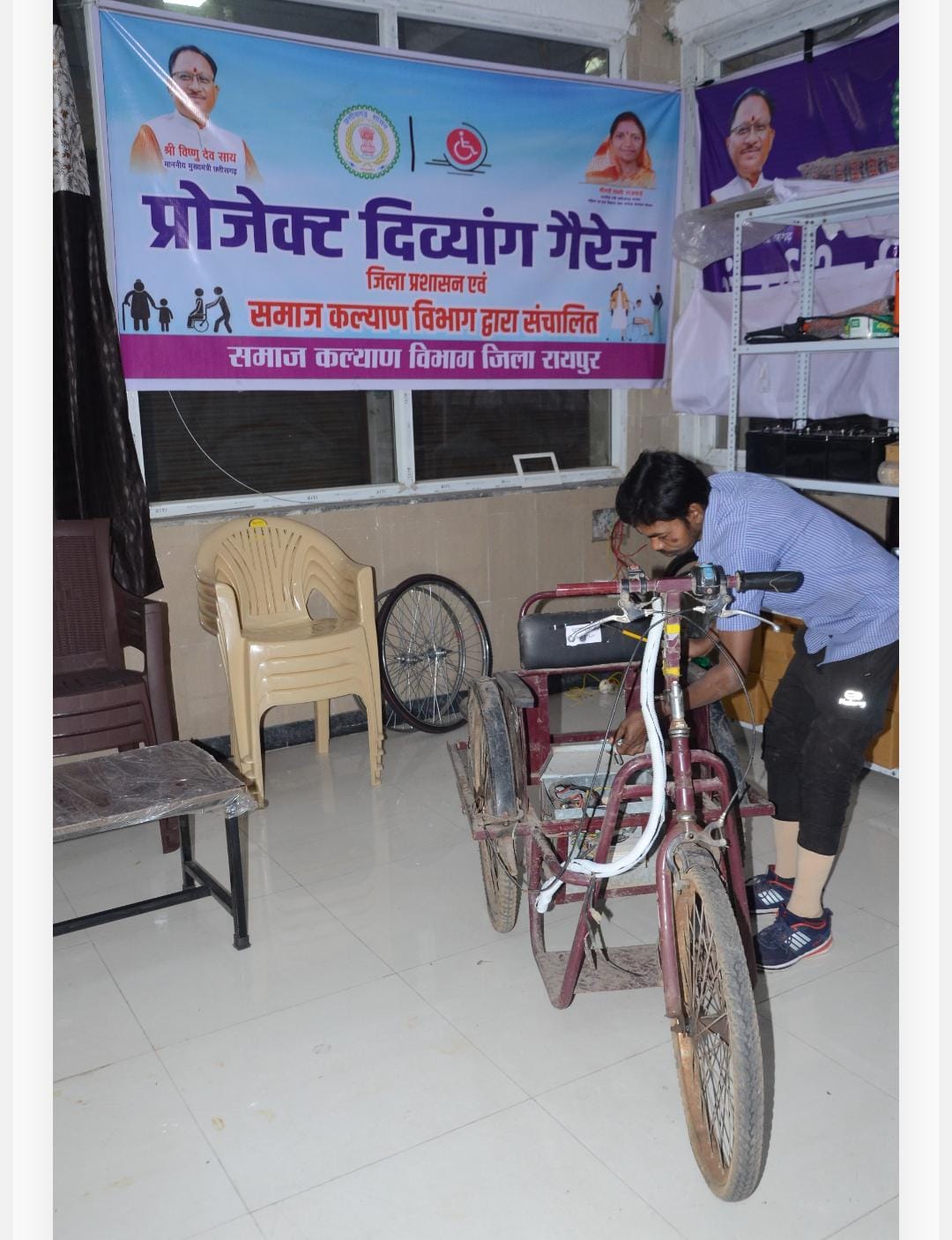 रायपुर। दिव्यांगजनों की दैनिक कठिनाइयों को ध्यान में रखते हुए शुरू किए गए सुगम्य भारत अभियान के तहत रायपुर में ‘संबल’ नाम से पहला दिव्यांग गैरेज शुरू किया गया है। मुख्यमंत्री विष्णु देव साय की घोषणा के बाद कलेक्टर डॉ. गौरव सिंह के निर्देशन में यह केंद्र स्थापित किया गया, जहां दिव्यांगजनों के उपकरणों की निःशुल्क मरम्मत की जाती है।