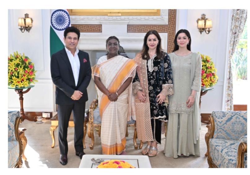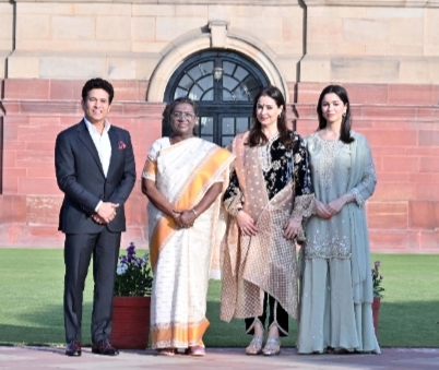 Cricket legend Shri Sachin Tendulkar, along with his family members, called on the President of India, Smt Droupadi Murmu at Rashtrapati Bhavan today (February 6, 2025). The President and Shri Tendulkar also took a round of Amrit Udyan.